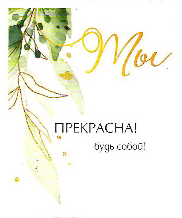 Главная Kаталог Карточки 52003, Ты прекрасна! Будь собой! Код цены 2 52003, Ты прекрасна! Будь собой! Код цены 2 Артикул: 52003 Место для поздравлений на оборотной стороне. Размер 74х92 мм.